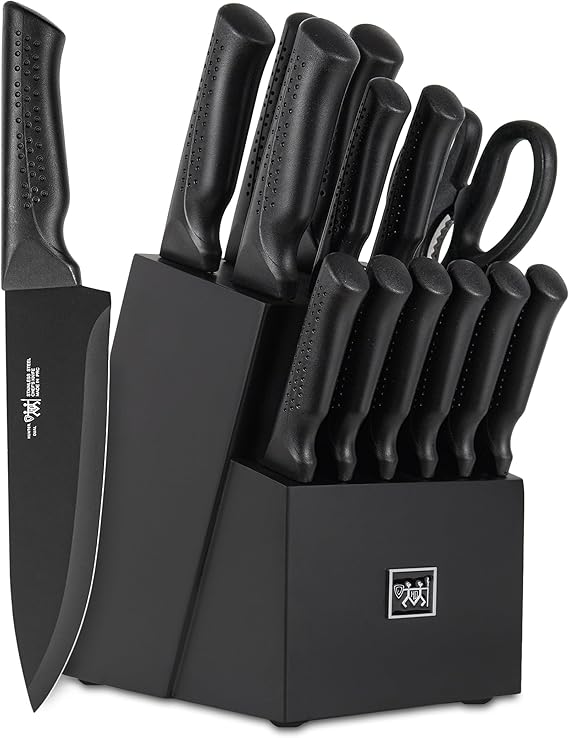• 15-piece kitchen knife set includes essential knives for precise cutting, chopping, and food preparation.